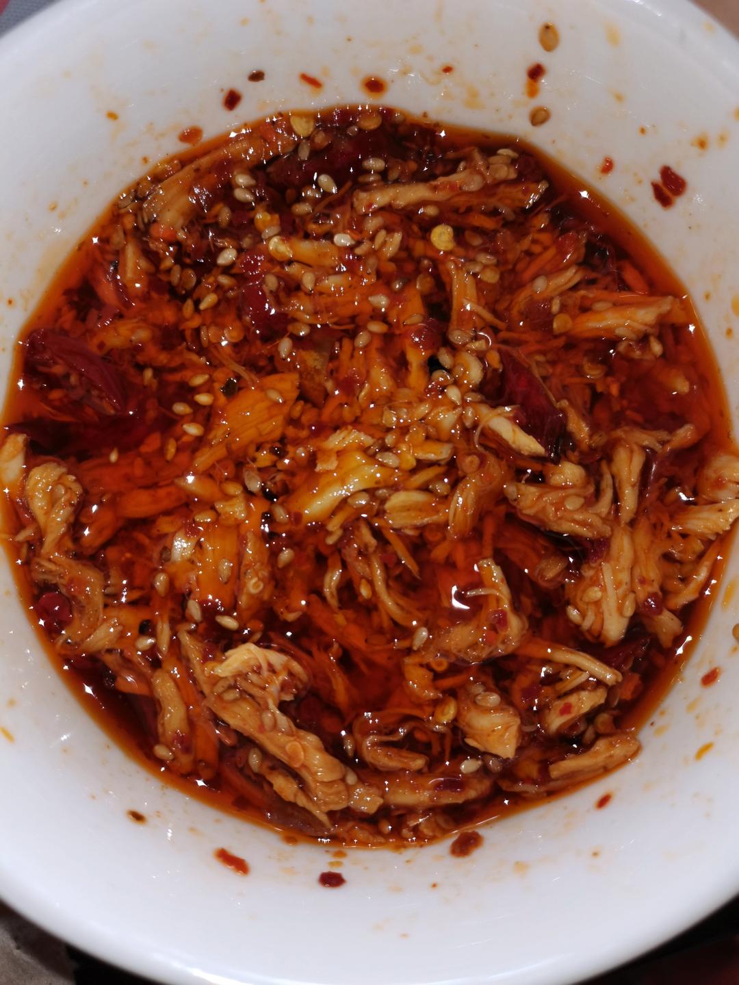 第一个没有香菜和蒜的凉拌鸡丝,第二个是我昨天拌的。昨天拌的挺好吃色香味俱全,因为我拿烤箱热油,就把芝麻,辣椒面,干辣椒(...