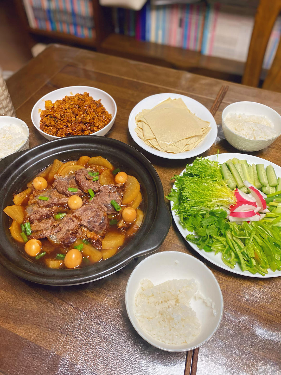 🎈晚餐:卤牛腱子,干豆皮卷鸡蛋酱青菜