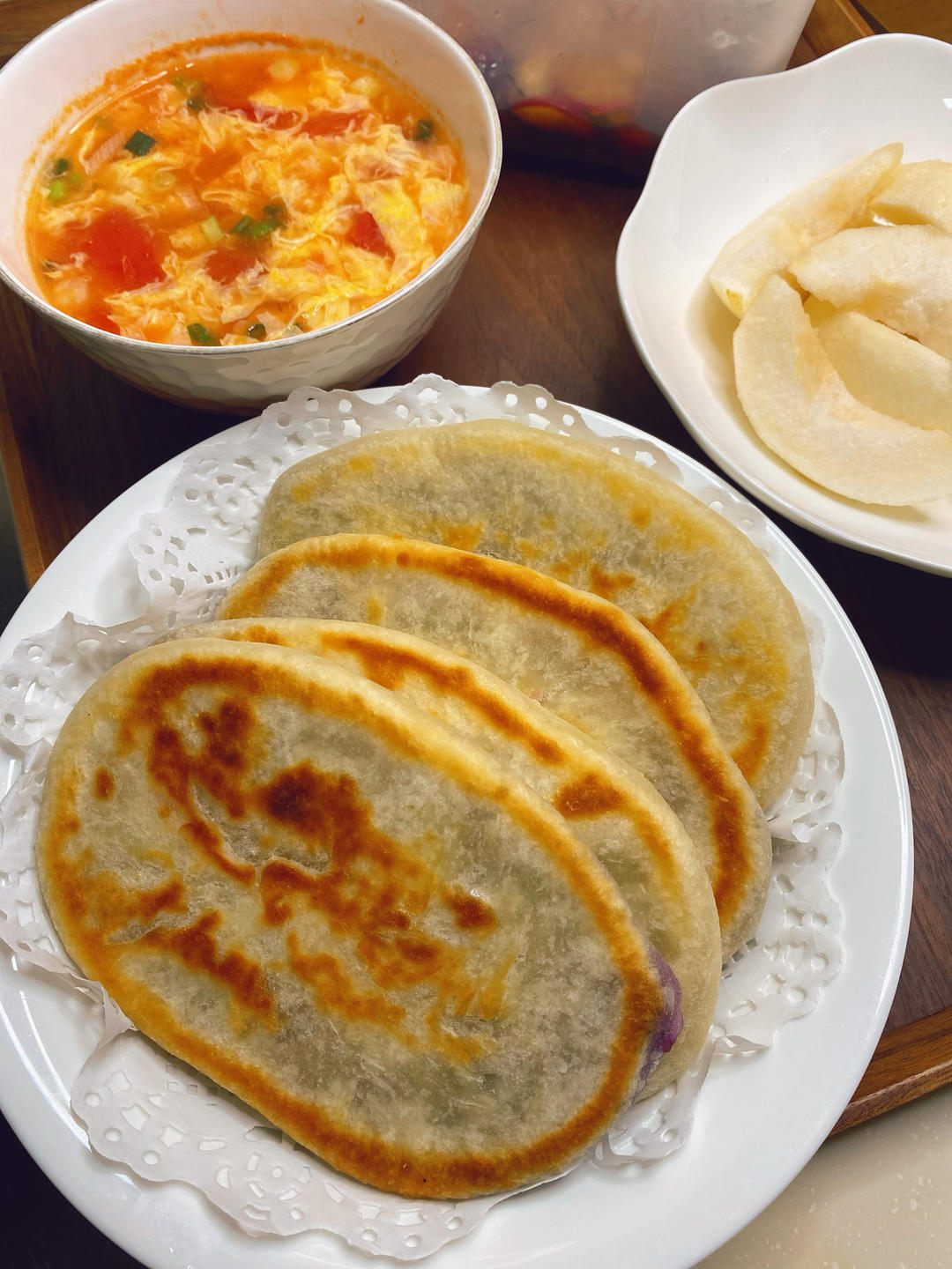 昨天剩下两个芋泥馅两个红豆馅,包在饼里,做成馅饼也很好吃!#早餐•2026年...