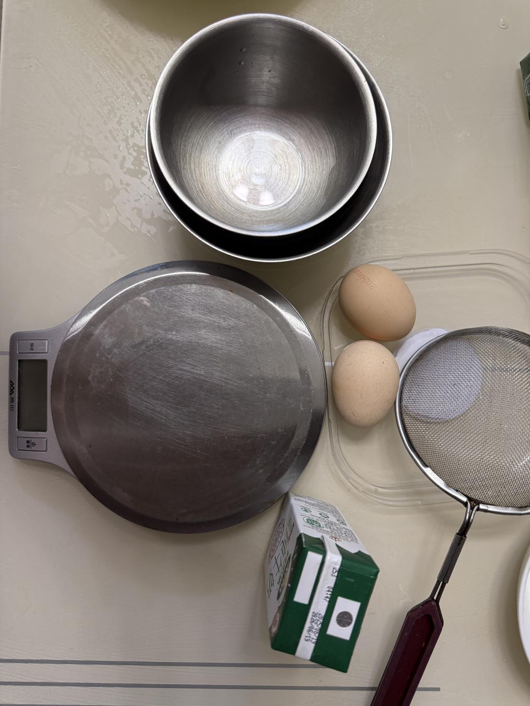 工具:厨房秤,两个碗,一个细筛,一个烤箱/空气炸锅;