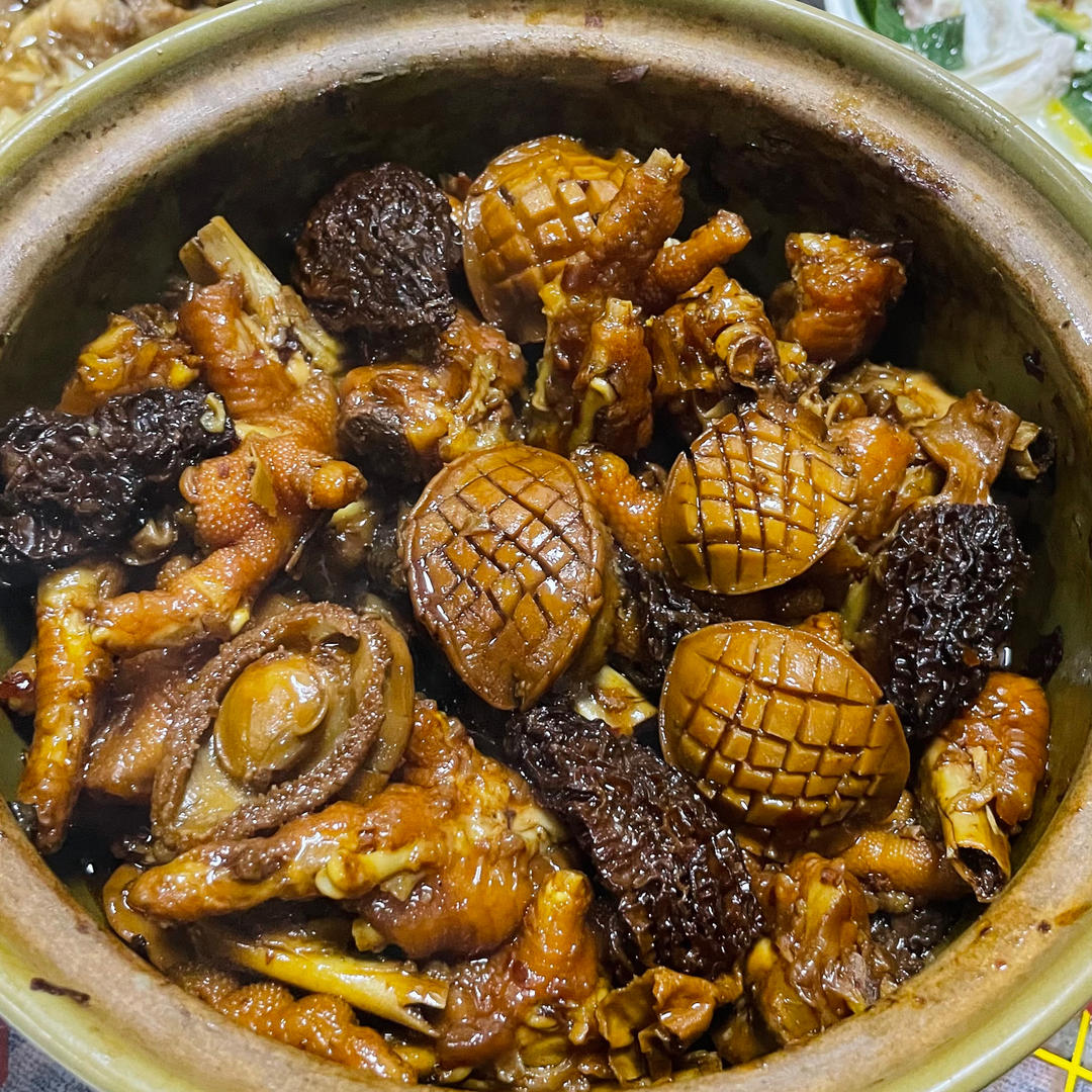 羊肚菌鲍鱼焖鸡爪。自己的拿手菜,简单易煮。超级下饭。