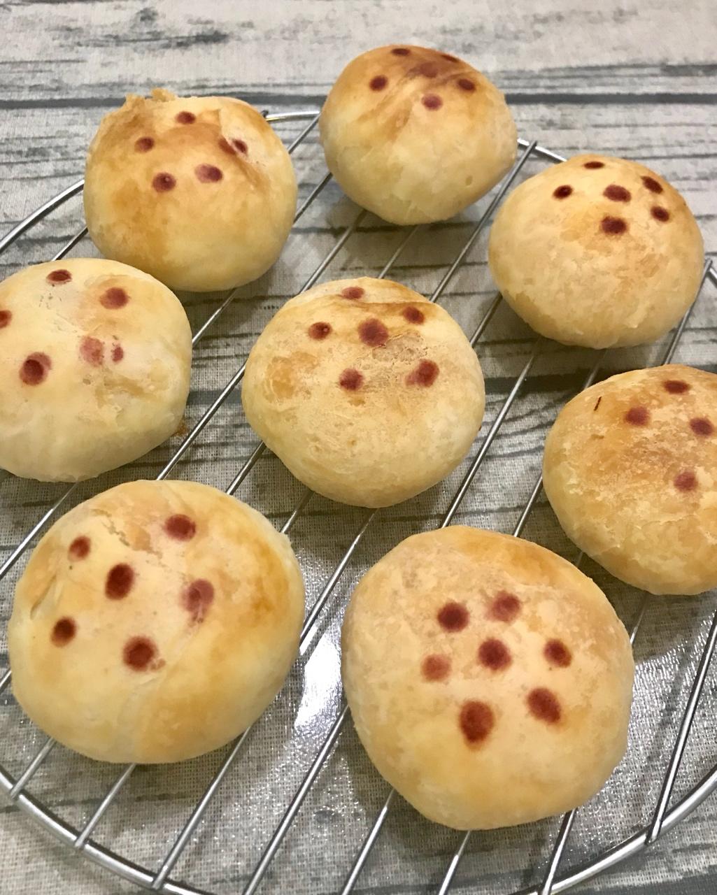 试着做了个苏式月饼,180度烤25分钟,230度烤5分钟出炉。感觉油大了点,下次水油皮里...