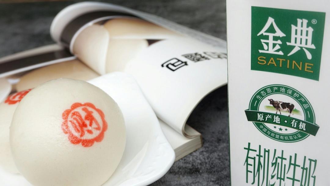 配上一盒伊利金典牛奶