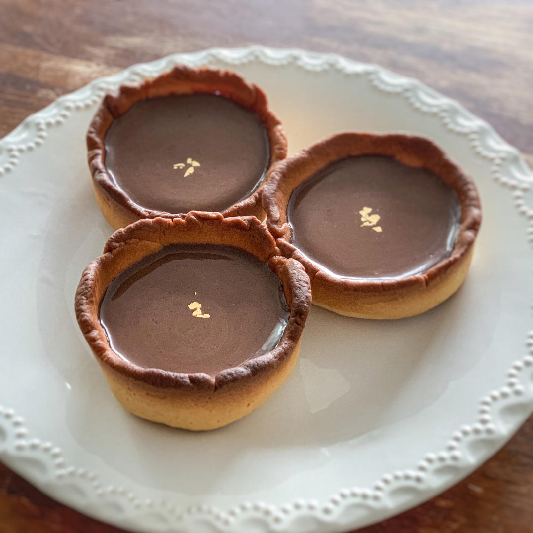 我家烤箱有點猛,30min就烤過了,撻皮有點硬,但還是很香!好喜歡巧克力撻!🥰