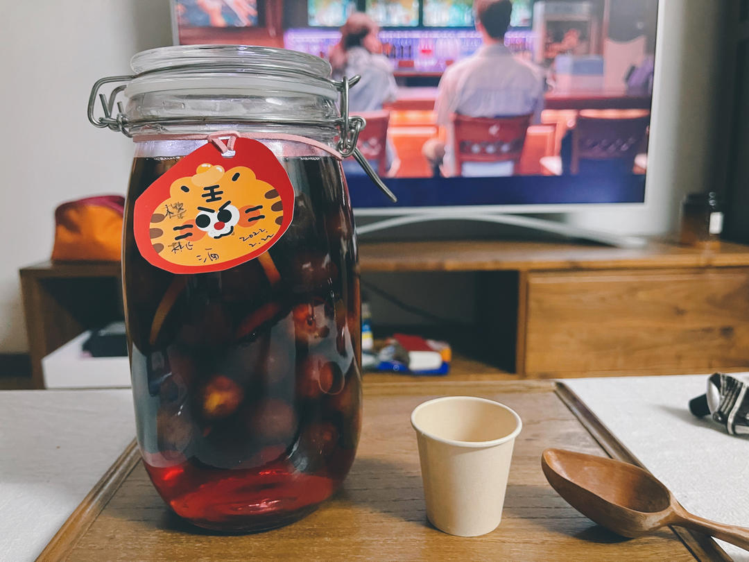 22-2-22做的樱桃酒,伏特加浸的,有点冲。不如之前九江双蒸浸的梅子酒讨喜。但刷刷剧,配...