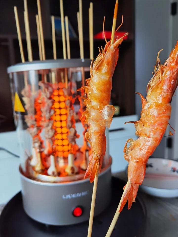 周末轰趴~水波炉吊烧烤串,水波炉清蒸鲈鱼。呃……撑!