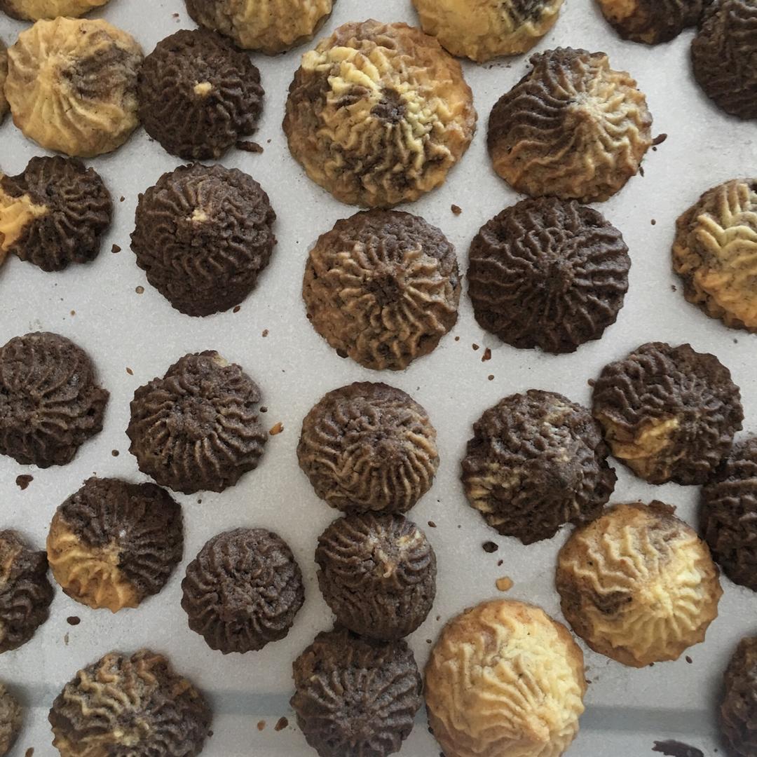 图一是第二次做的,图二是第一次,第一次明显是烤焦了😂(我不管为了拍照好看,我就当它是可可味的)图一其实是加了抹茶粉的,可...