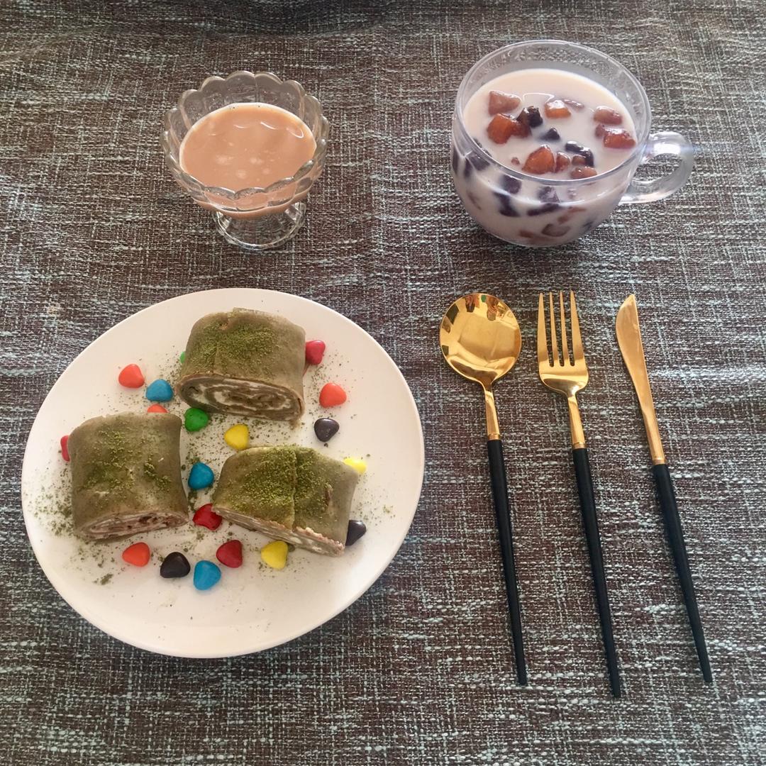 作为抹茶重度爱好者,硬是换成了抹茶味的哈哈。中间奶油夹了一些奥利奥碎好吃好吃。珍珠和芋圆都是自己做的,珍珠真的超级有弹性...