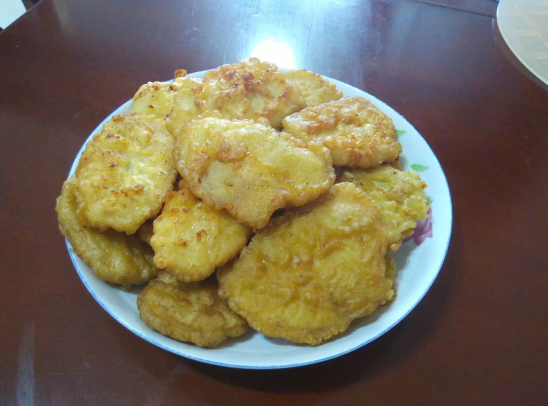 看麻烦,直接裹油炸粉下锅炸了,宝贝立马就啃了一块!