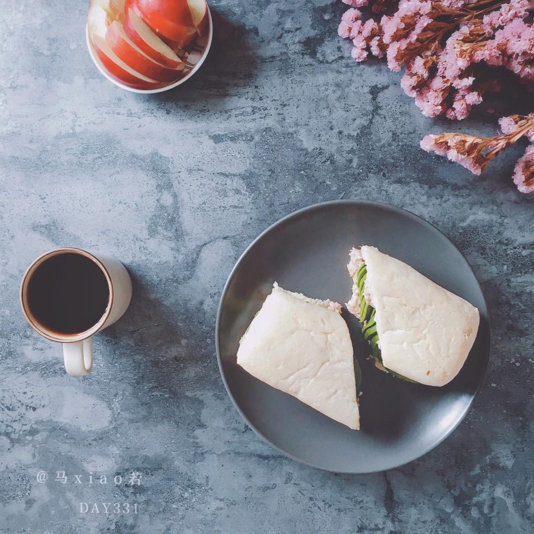 【DAY331早餐】金枪鱼牛油果帕尼尼+油桃+咖啡☕