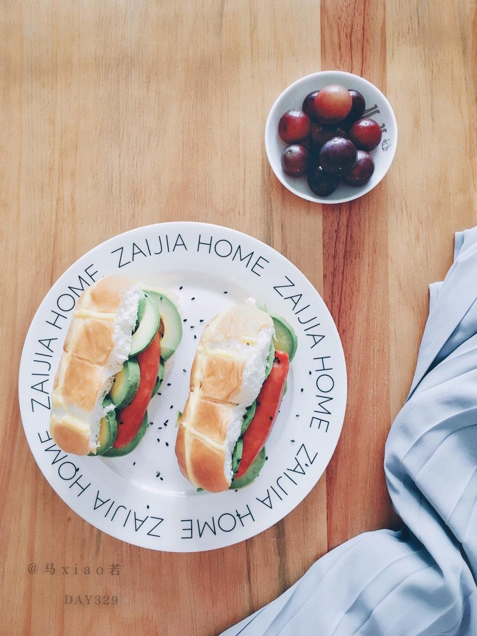 【DAY329早餐】牛油果热狗+葡萄☀️