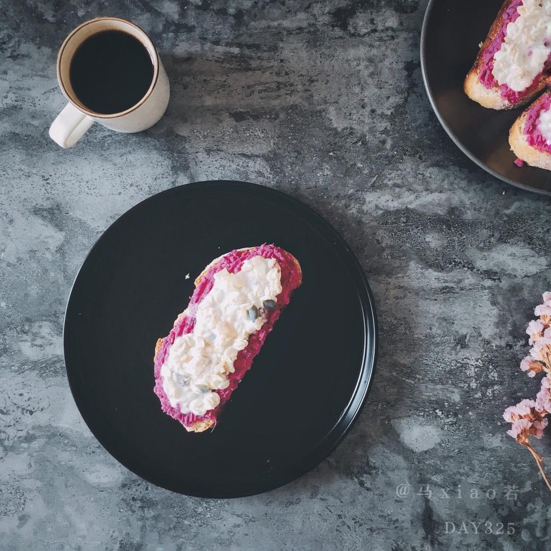 【DAY325早餐】紫薯面包+酸奶麦片+☕