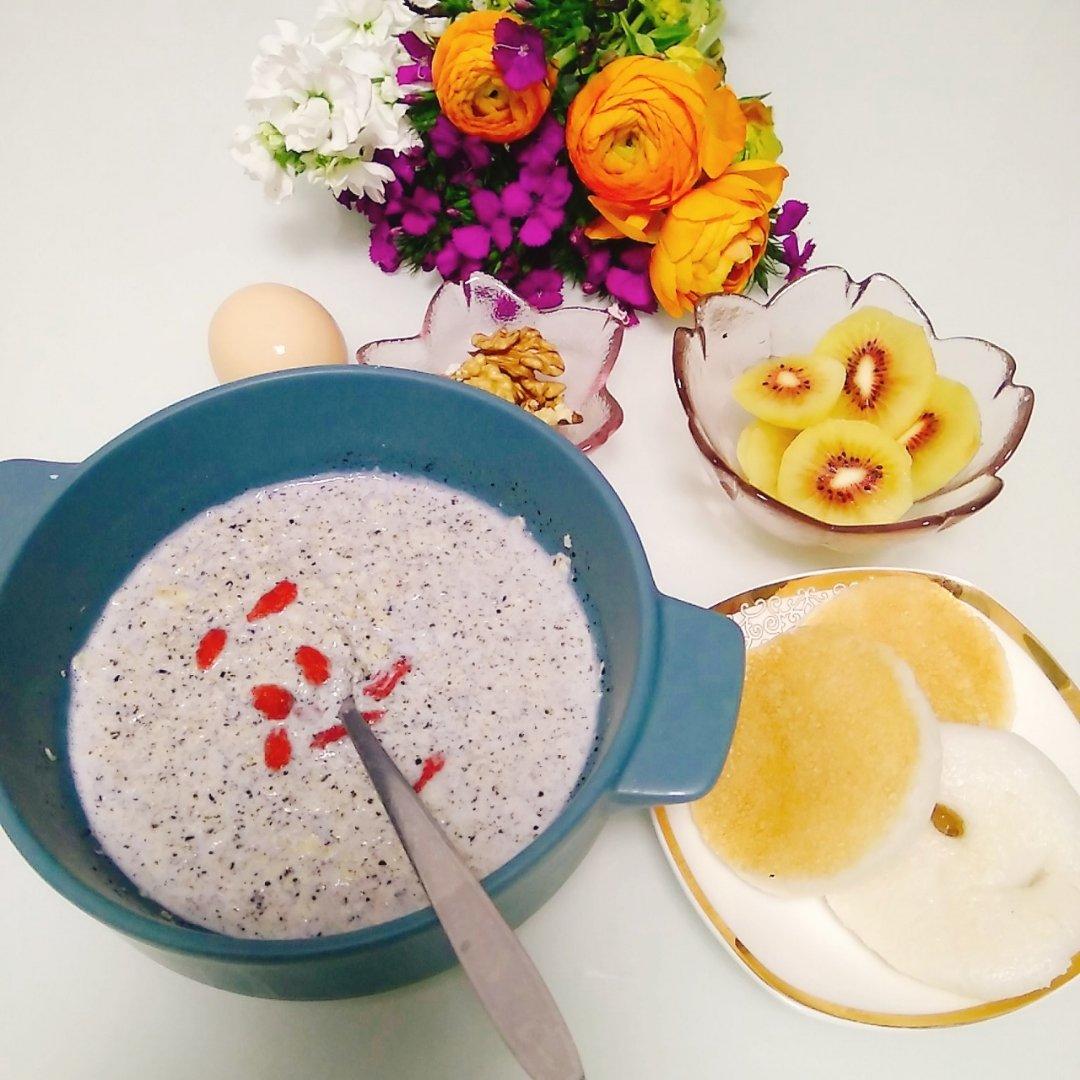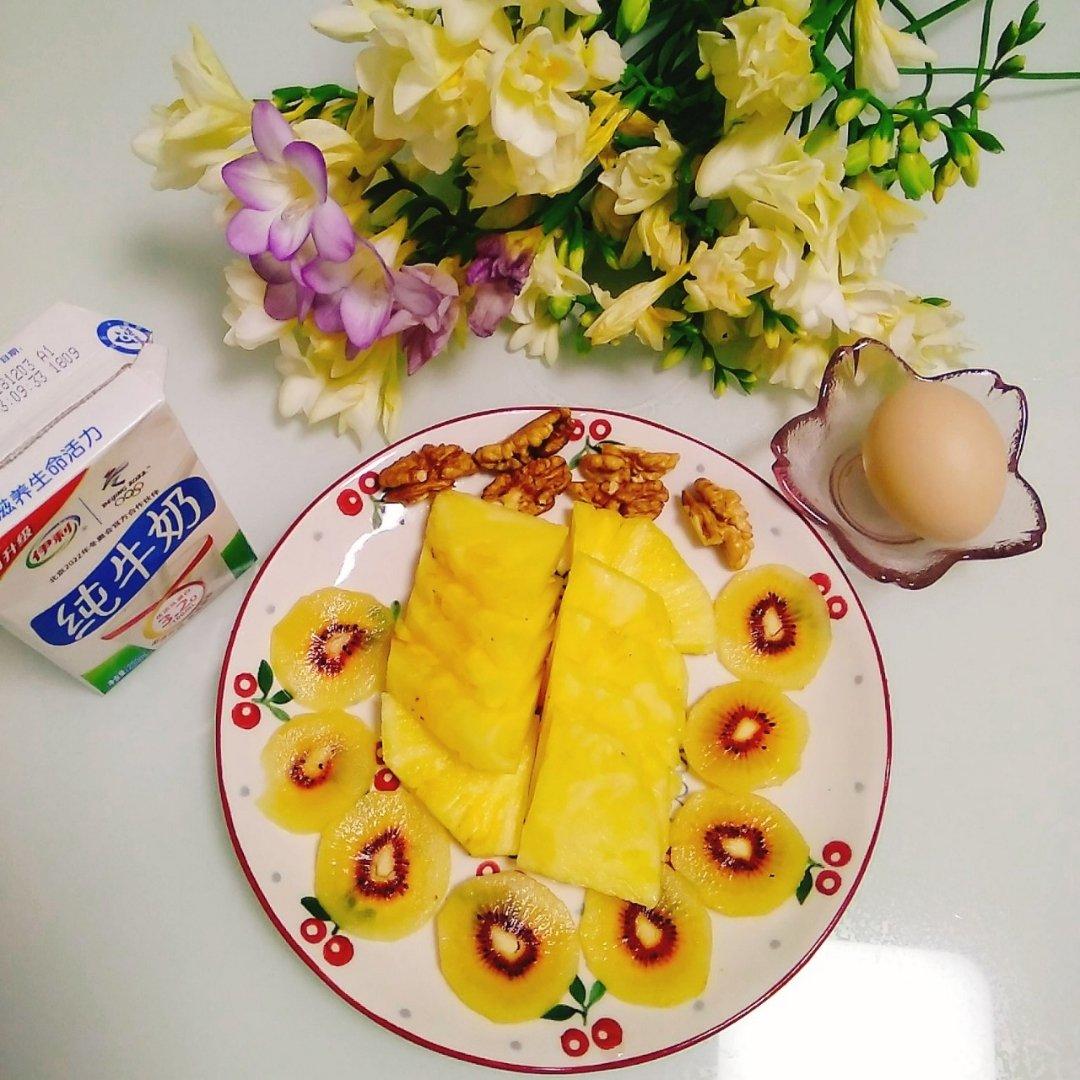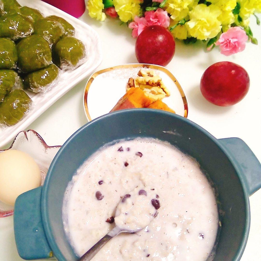牛奶蜜豆麦片+蜜薯+鸡蛋+青团+核桃仁+宝珠李