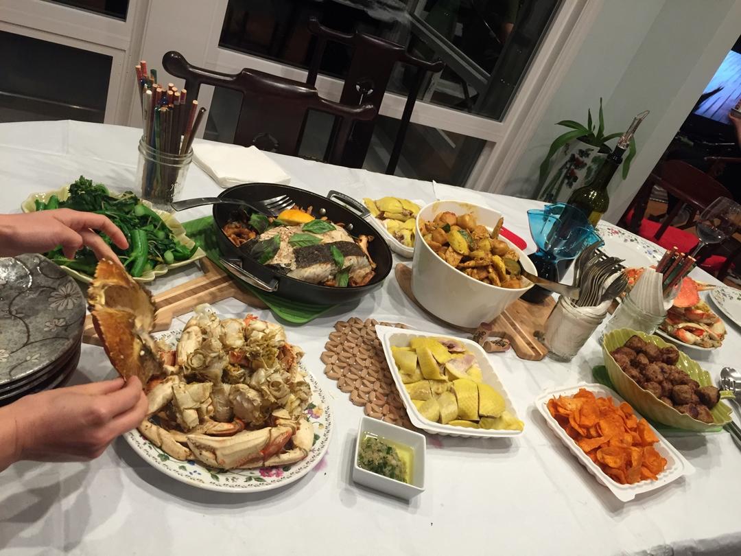 手术前一天的聚餐, 做了个8+6, 但是奶油打的太软, 开车转了两个弯就开始塌了, 剩上面6 寸的还能见人. #晚餐•2...