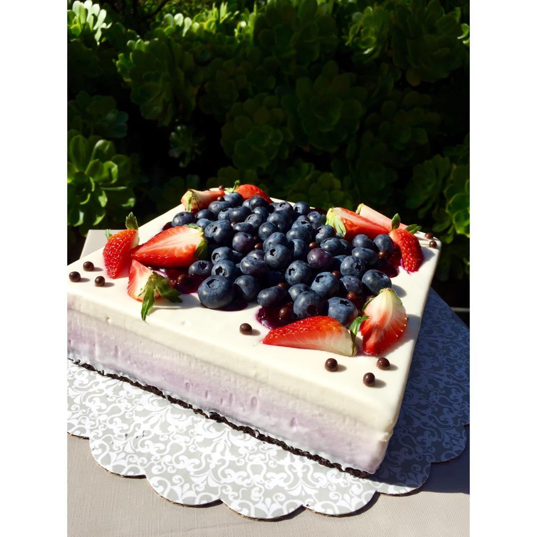 也是昨天姑父生日的蛋糕, 做了5 层渐变, 3 被的量, 中间还加了两片蓝莓戚风蛋糕. 我辛辛苦苦做的蛋糕, 还摆的那么...