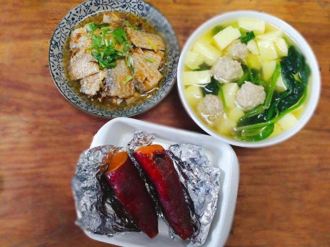 二人食:西葫芦番茄鸡蛋+红烧带鱼+酱烧鸡翅+清蒸沙鳗干