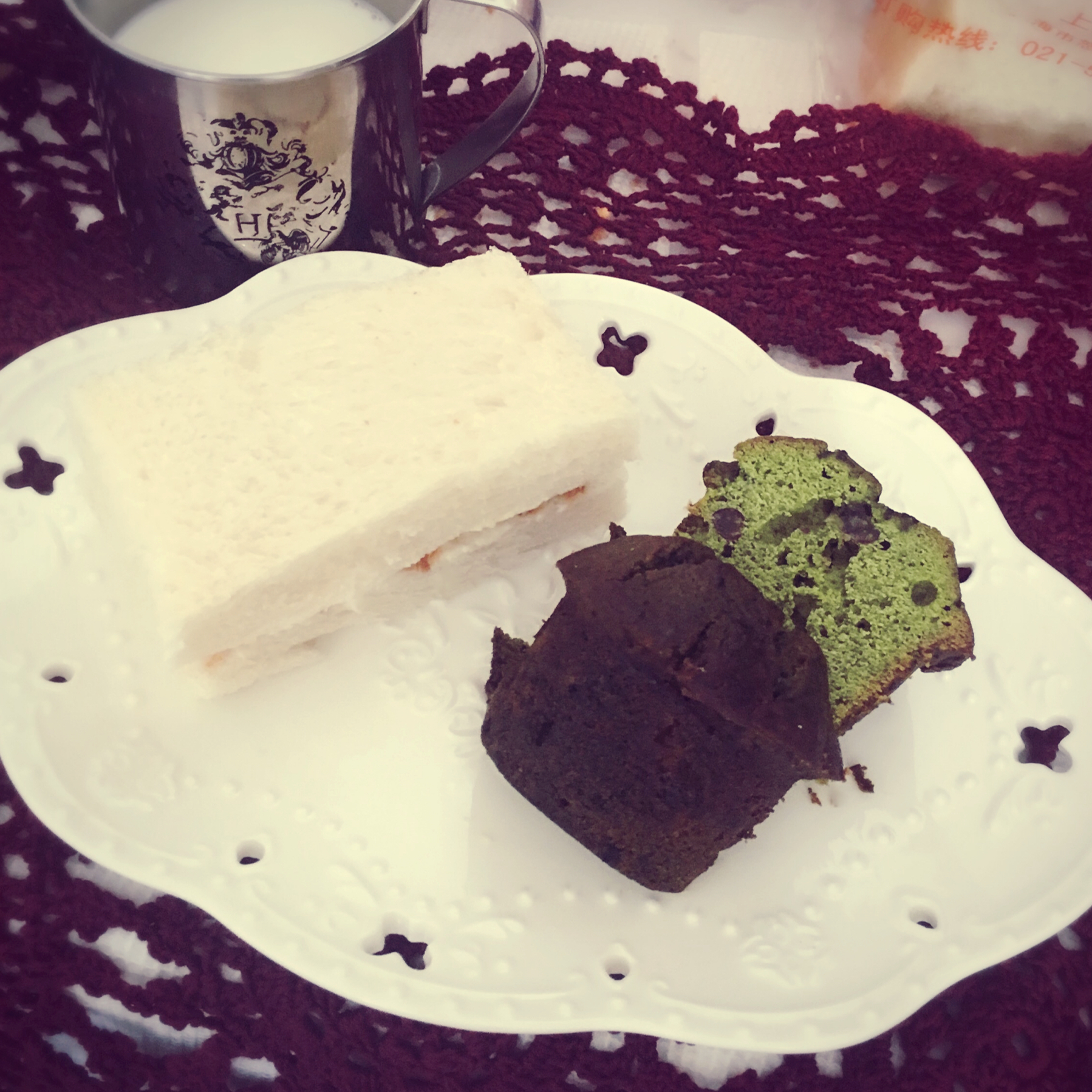 红豆抹茶磅蛋糕 肉松三明治 白煮蛋
