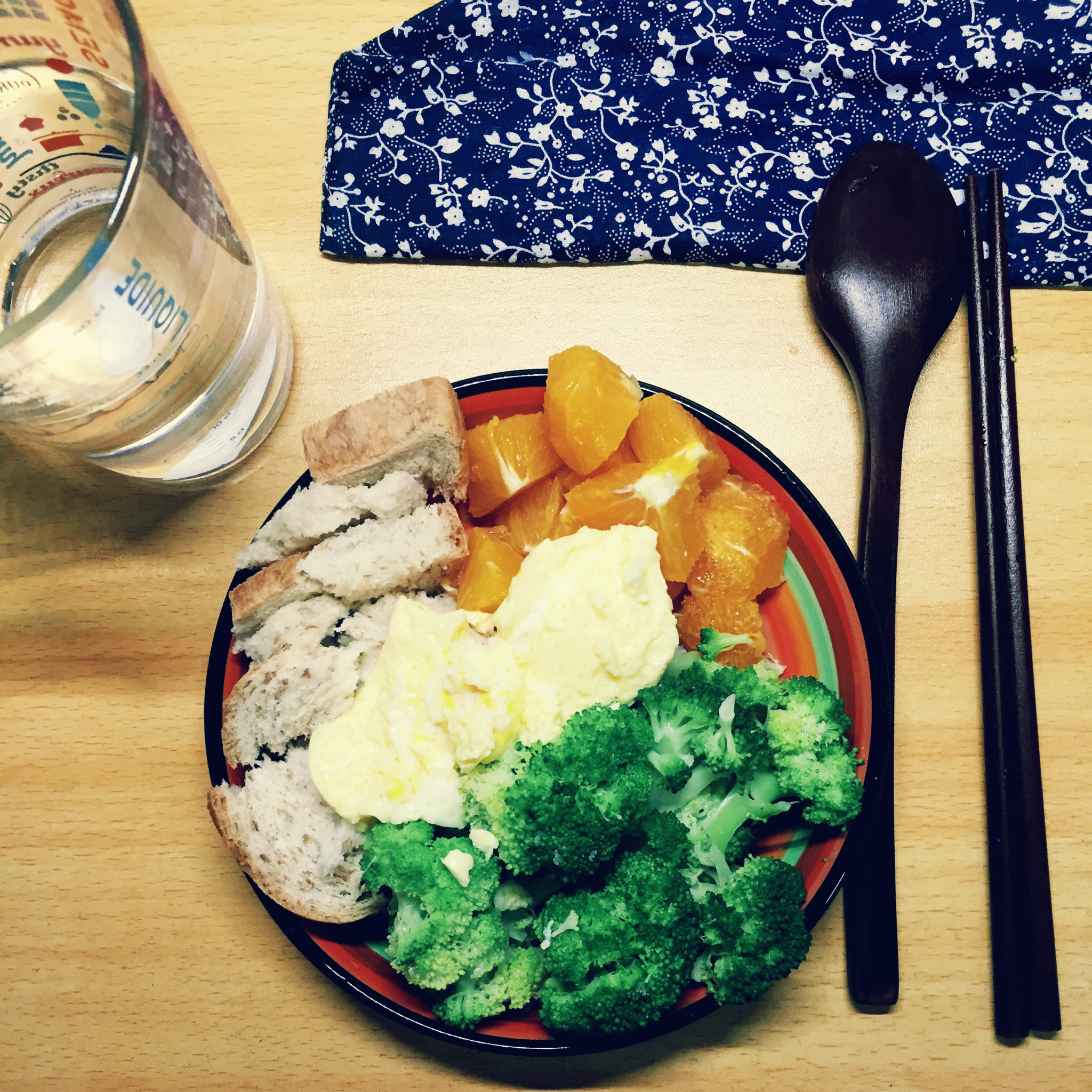 西兰花 全麦 橙子 鸡蛋羹 清水