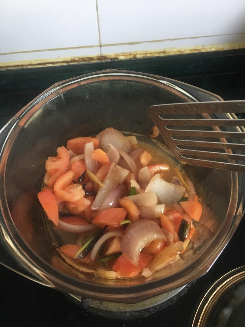 牛肉焯过之后,炒香料,炖了两小时。后面还加了土豆,西红柿