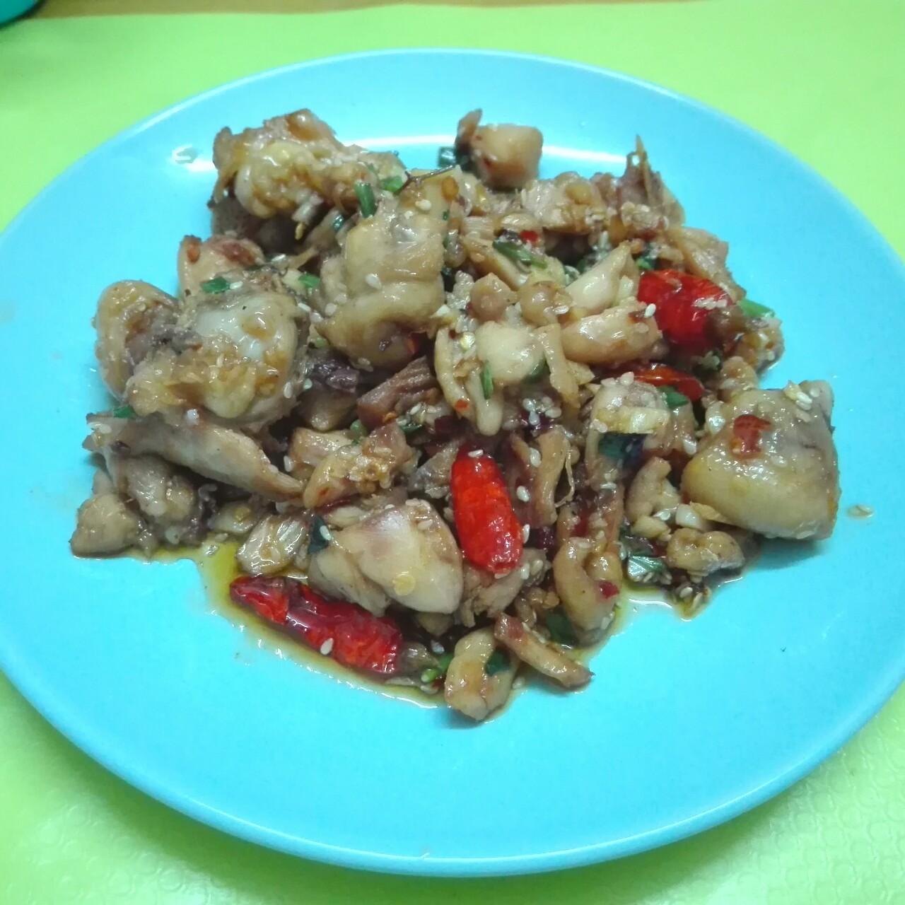 早上买的2只鸡腿,在人山人海的菜市场晃啊晃,一声令下老板娘就给我崭崭崭崭成块了。小葱和花椒...