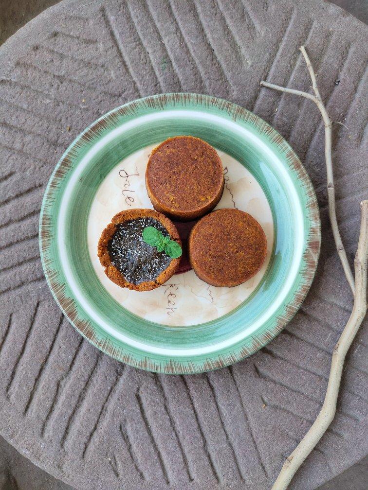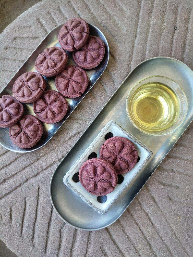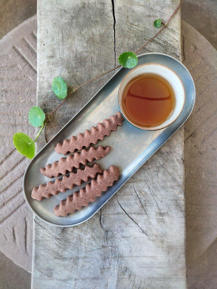 杏仁粉30(过筛)低粉20黄油20蛋黄半个盐0.5白糖粉可可粉