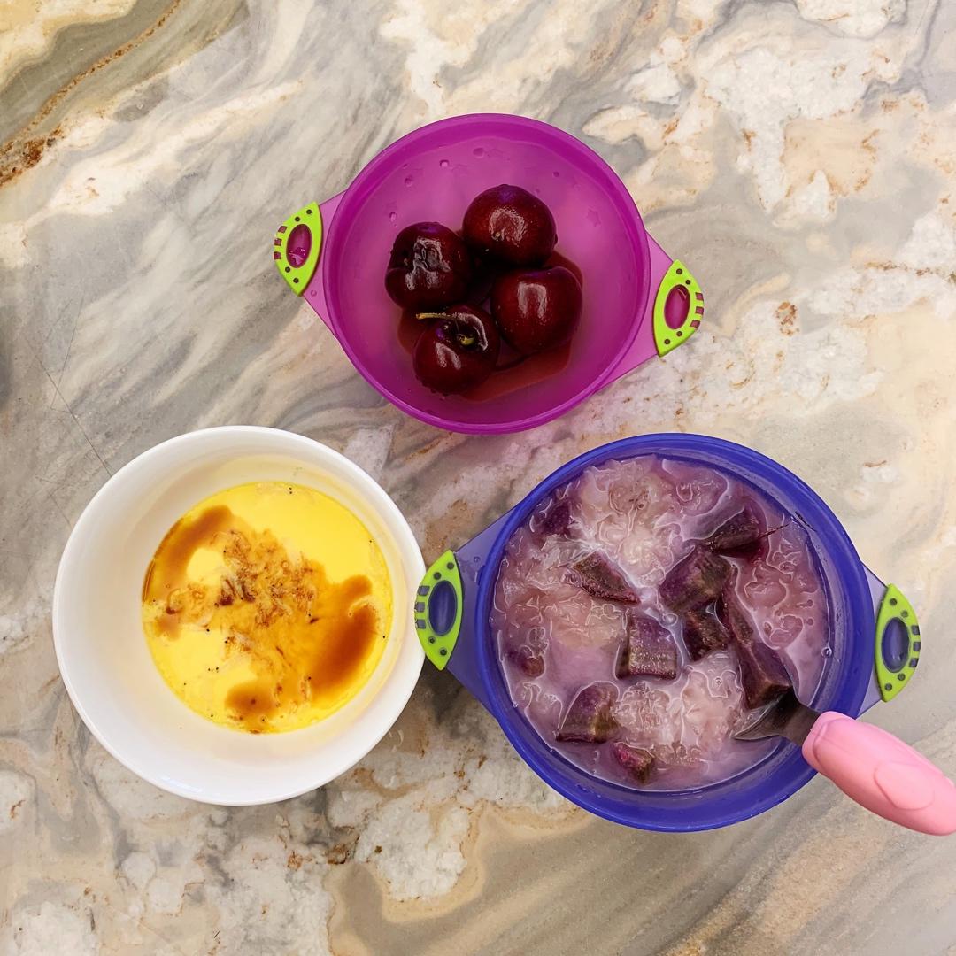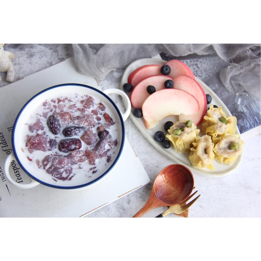 今日朝食:紫薯牛奶银耳羹🍠➕烧卖➕水蜜桃🍑