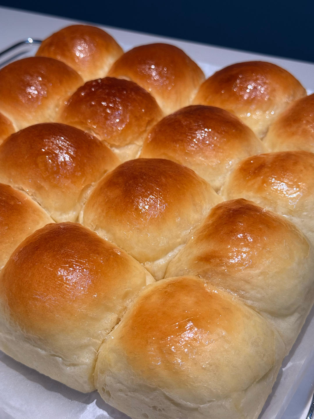 黄油小餐包,配方ok的,吐司的配方和量,用28×28烤盘烤的效果更好耶✌🏻,就是图中温度不适用我的烤箱,应该...