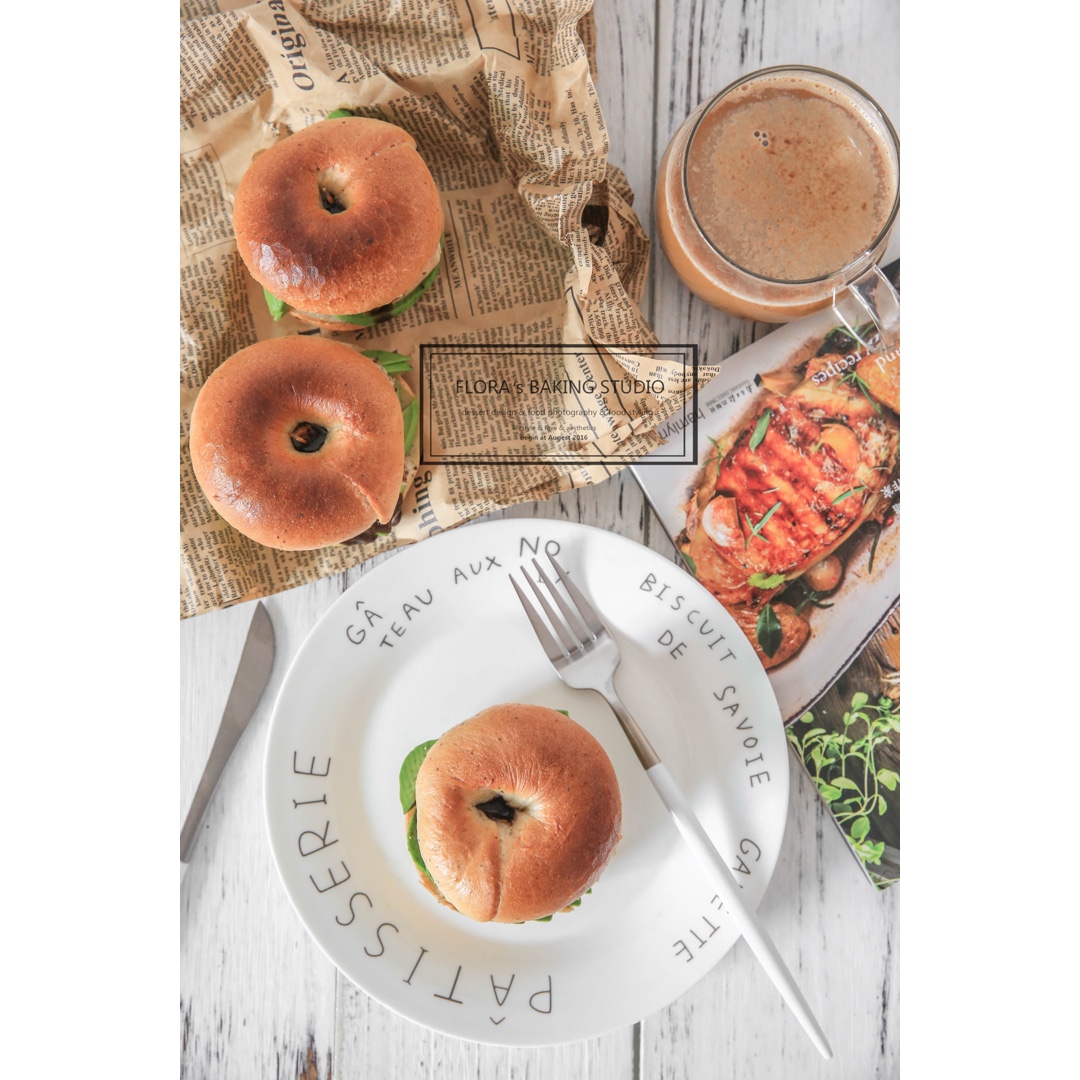 黑椒贝果三明治~三个都吃了,嗝~