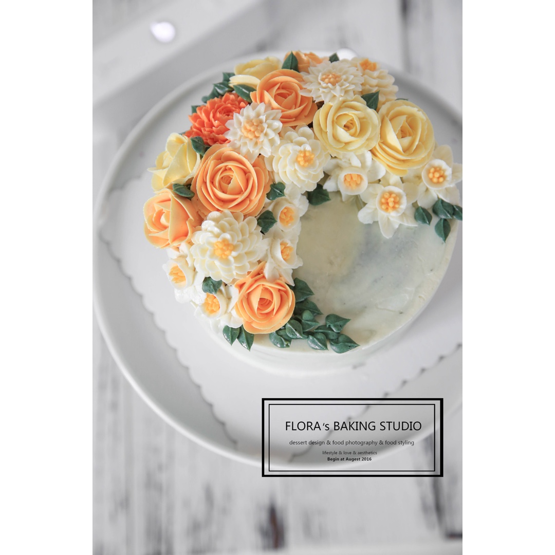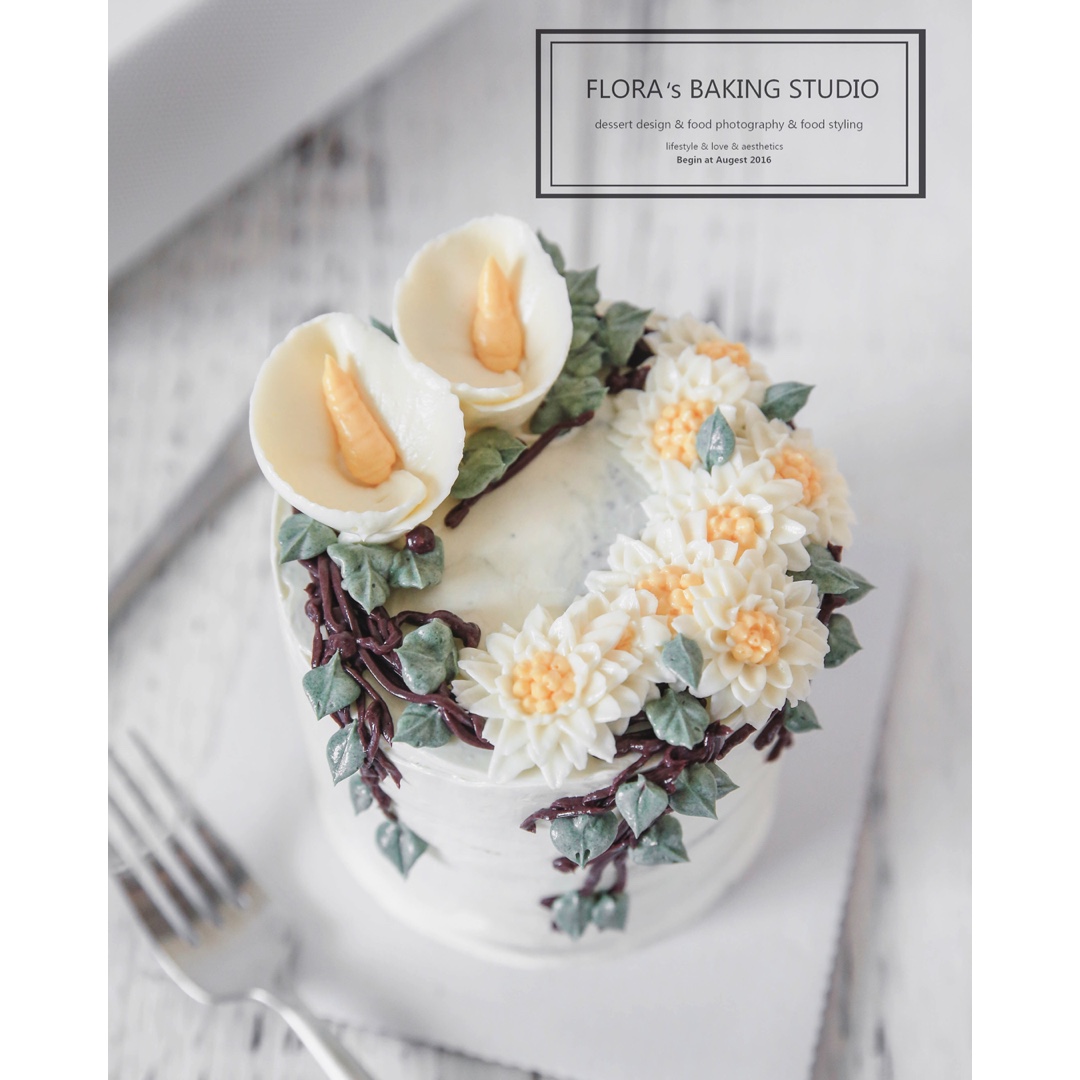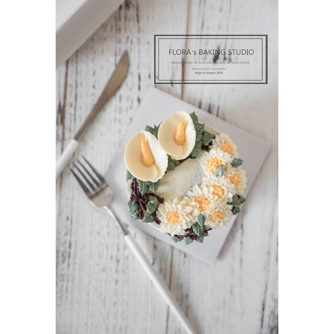 新的韩式裱花蛋糕设计,清新风的马蹄莲和小雏菊搭配,加高四寸。工作室课程筹备ing~~