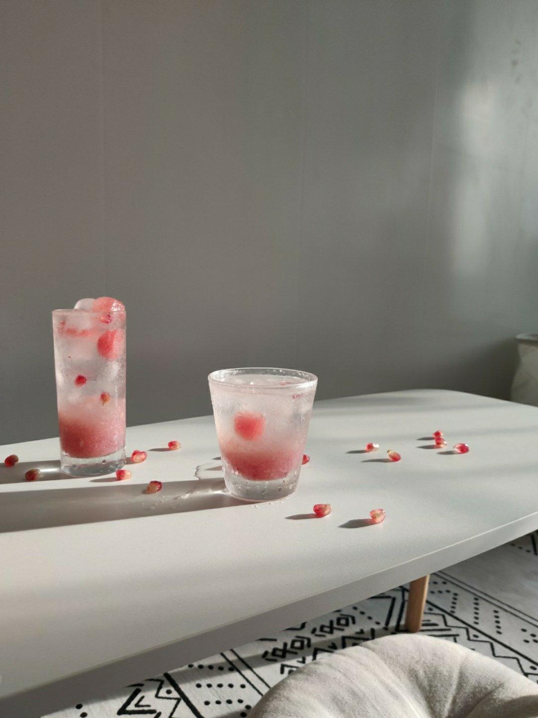 今天下班较早,4点多到家,打开门一看,阳光这么棒赶紧把石榴榨了汁做了两杯冰的,今天也是非常re了🍻爽啊