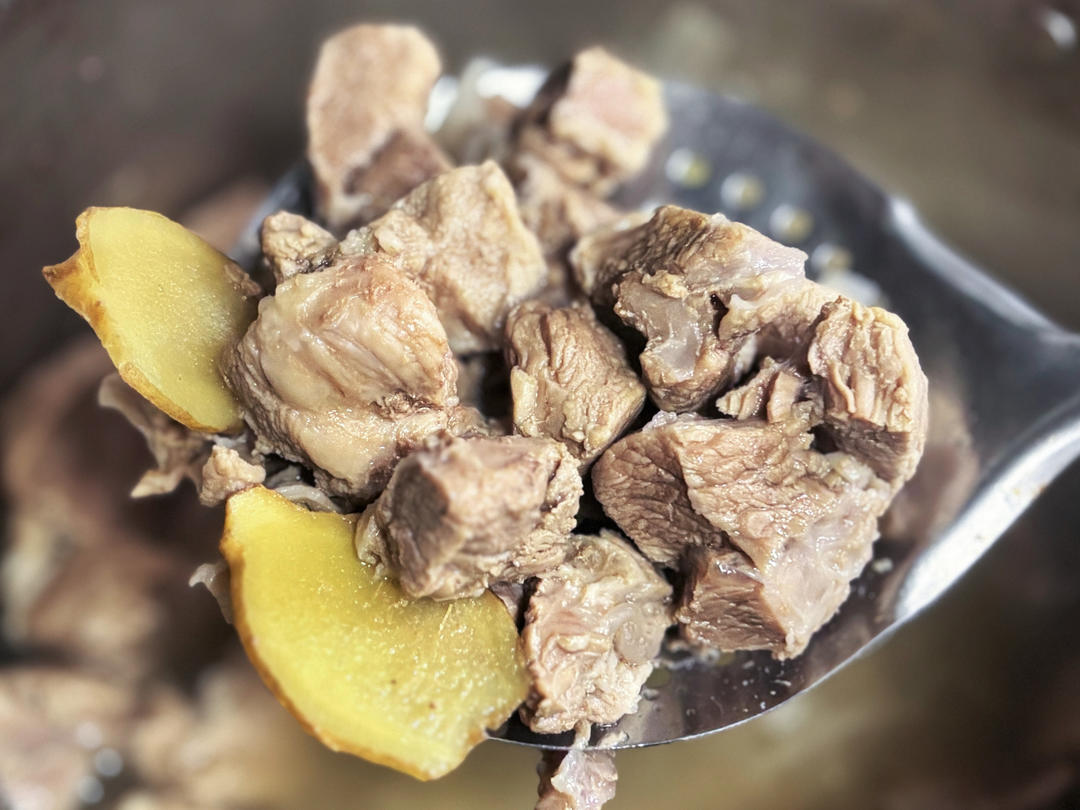 只放了盐、姜片和洋葱,太美味了。真是很好的诠释了原味羊肉的美。