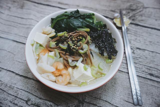 味增海鲜萝卜豆腐荞麦面,上周末的存图……日系风走一个~