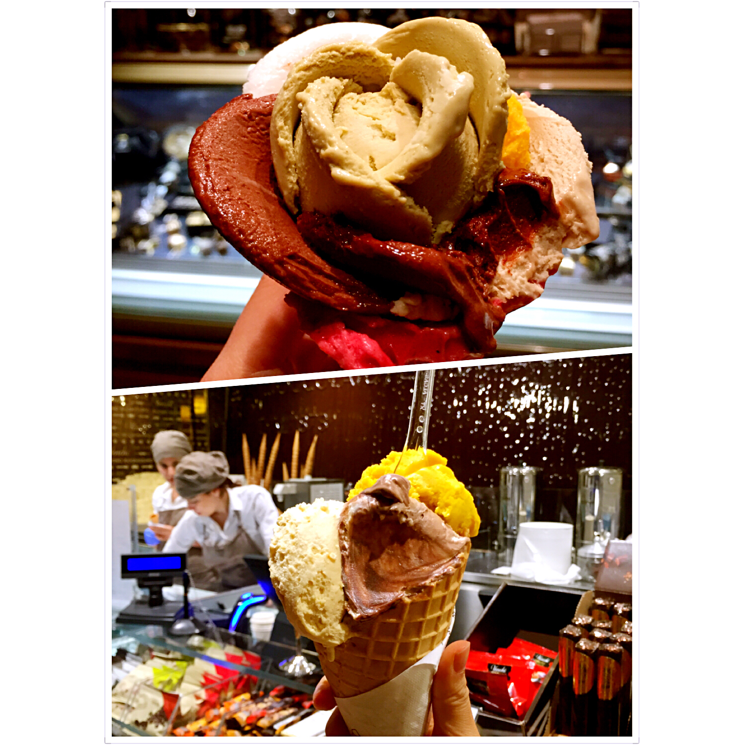 两款冰淇凌大比拼,上面是法国小天使,最爱开心果口味,中号4欧多,口味任意多少都行。下面意大利venchi,5欧三个口味,...