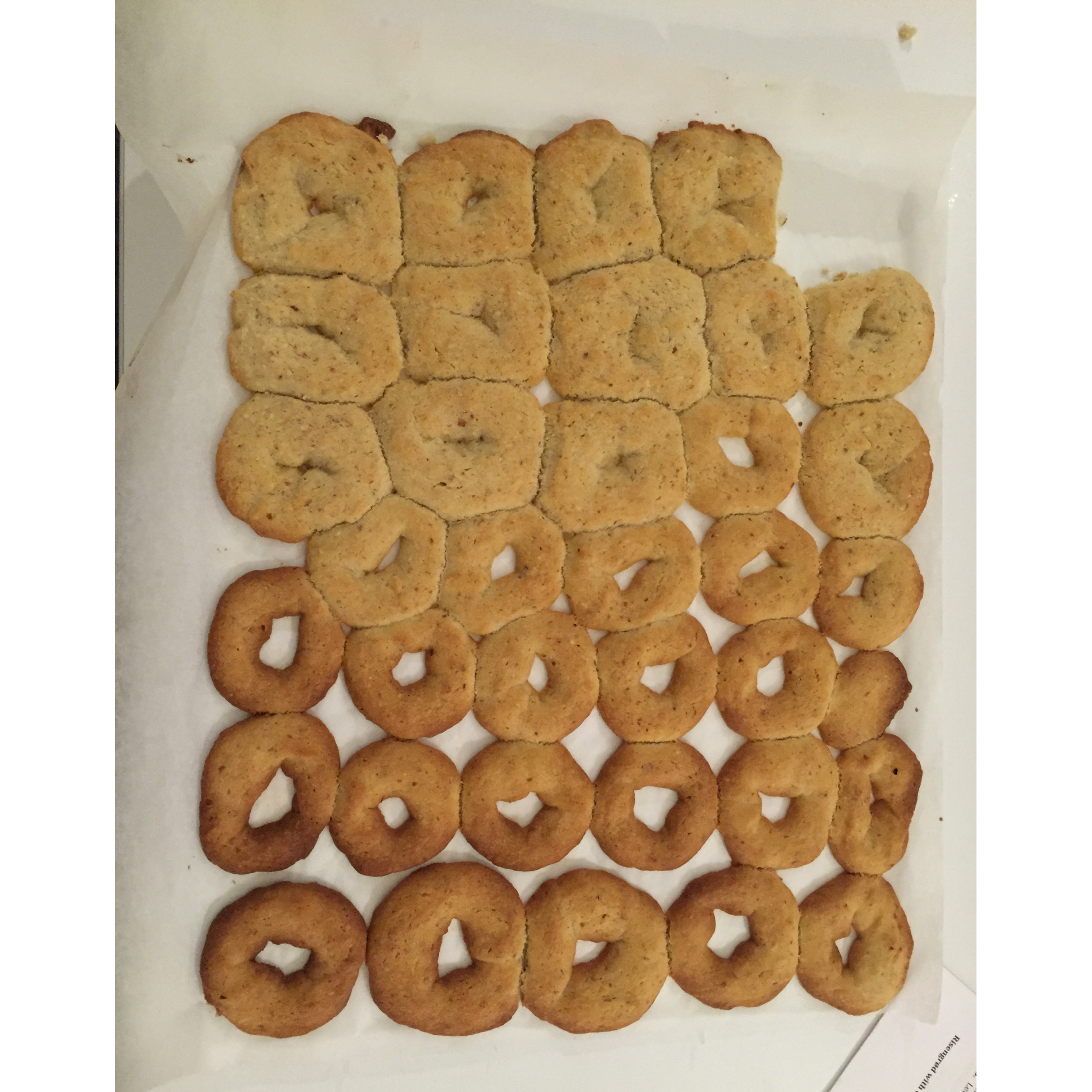 丹麦曲奇,为什么做得这么丑?右半边我做的还算是环形,左半边男同学做的完全是大饼了。。。图二是粽糖杏仁饼,图三依旧是传统的...