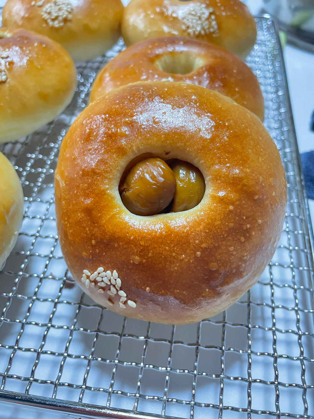 【今日份美食—日式栗子挞面包】用烫种做的栗子馅面包,组织柔软,好吃停不下来~整形简单,颜值在线的一款限定面包~小美和面+...