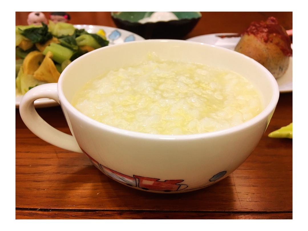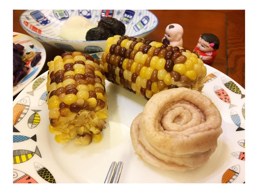 2018年4月4日,周三,早上好!今日早餐:蛋花玉米糊,蒸玉米+奶香盘丝大花卷,木耳炒包菜,温泉蛋+红枣