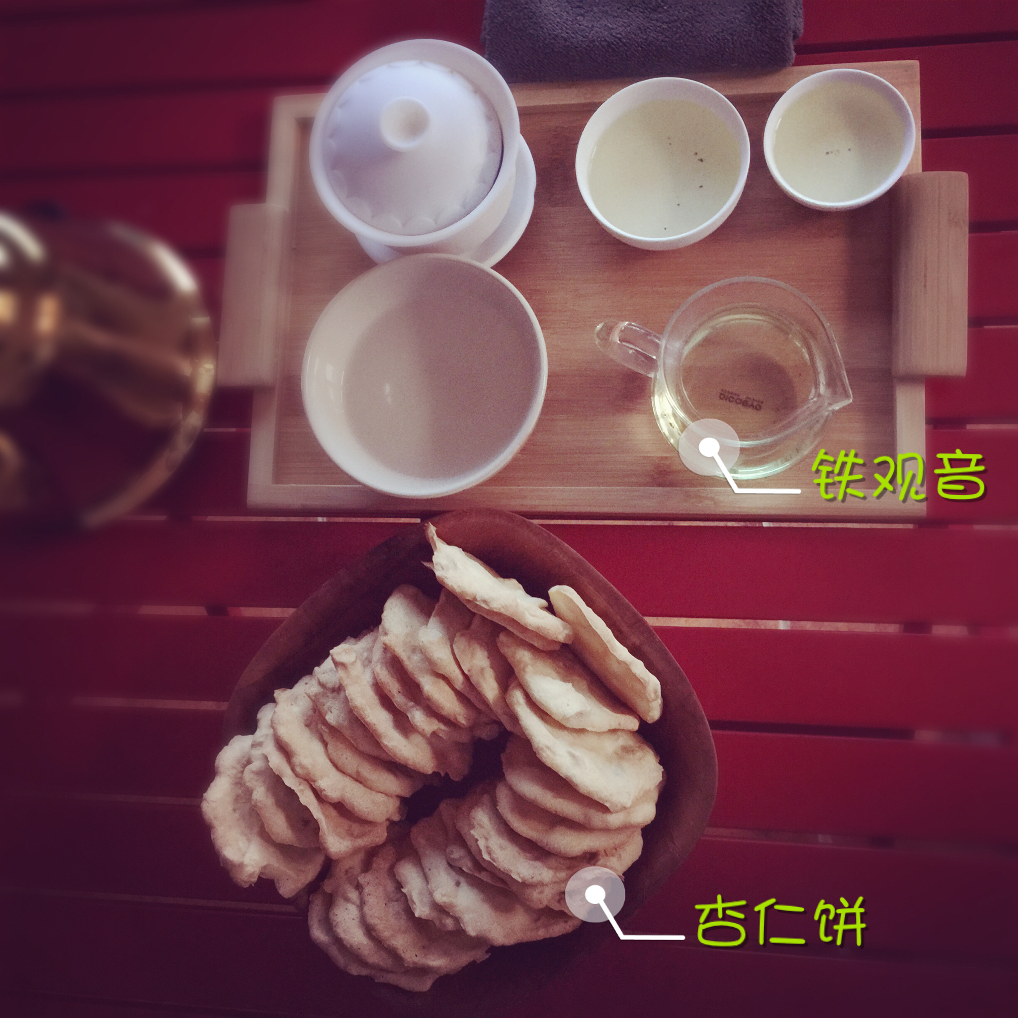 杏仁饼的脆香是后调,从鼻腔直冲上去…铁观音的茶香是余韵,渗透到每颗牙齿之间…两种香味虽皆浓郁却不冲突,是以又沉醉于这片刻...