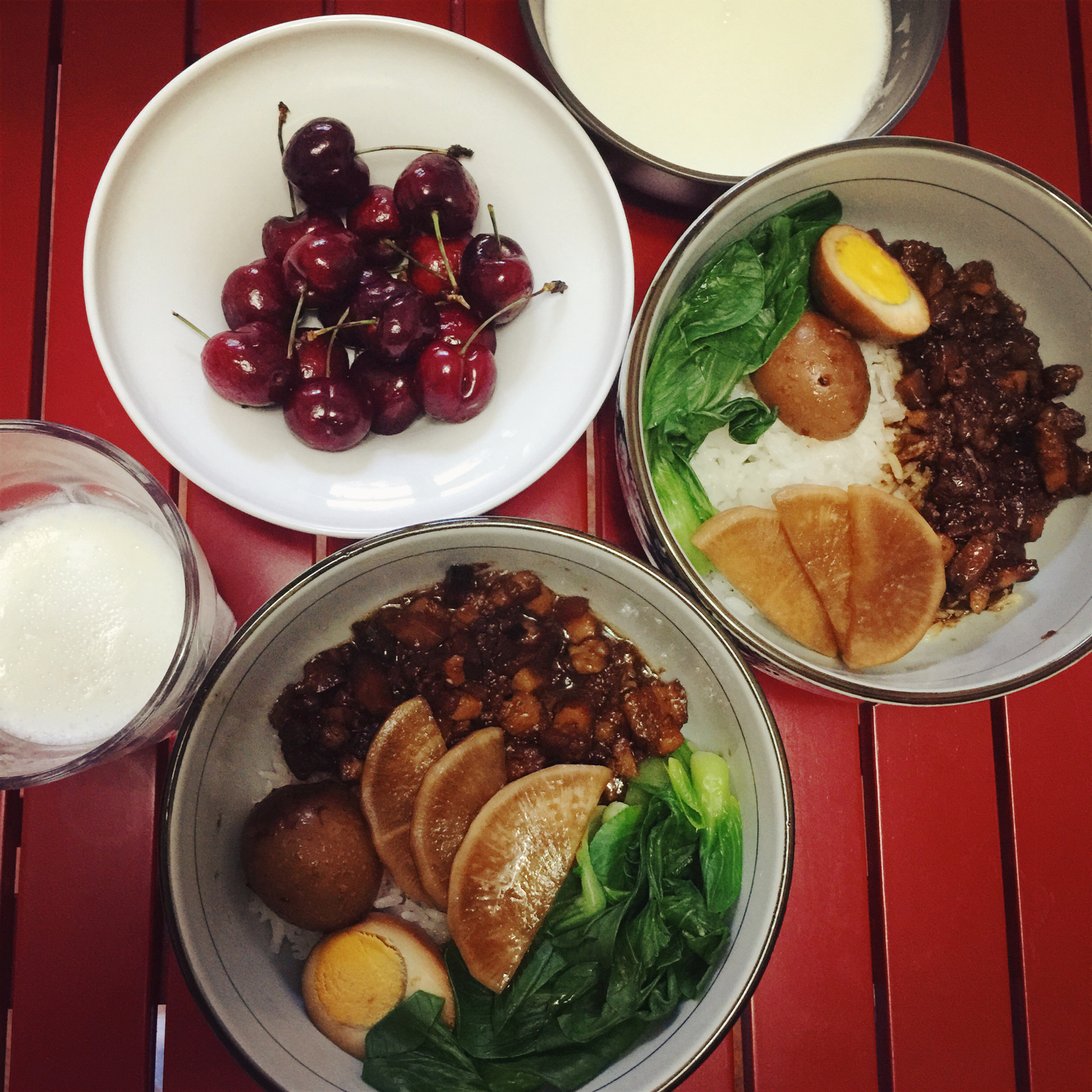 用直径20cm大碗盛满的超满足卤肉饭,配了自己腌的萝卜解腻,也不知是油浸在饭里还是饭泡在油里。昨天四个小时的劳动,此刻觉...