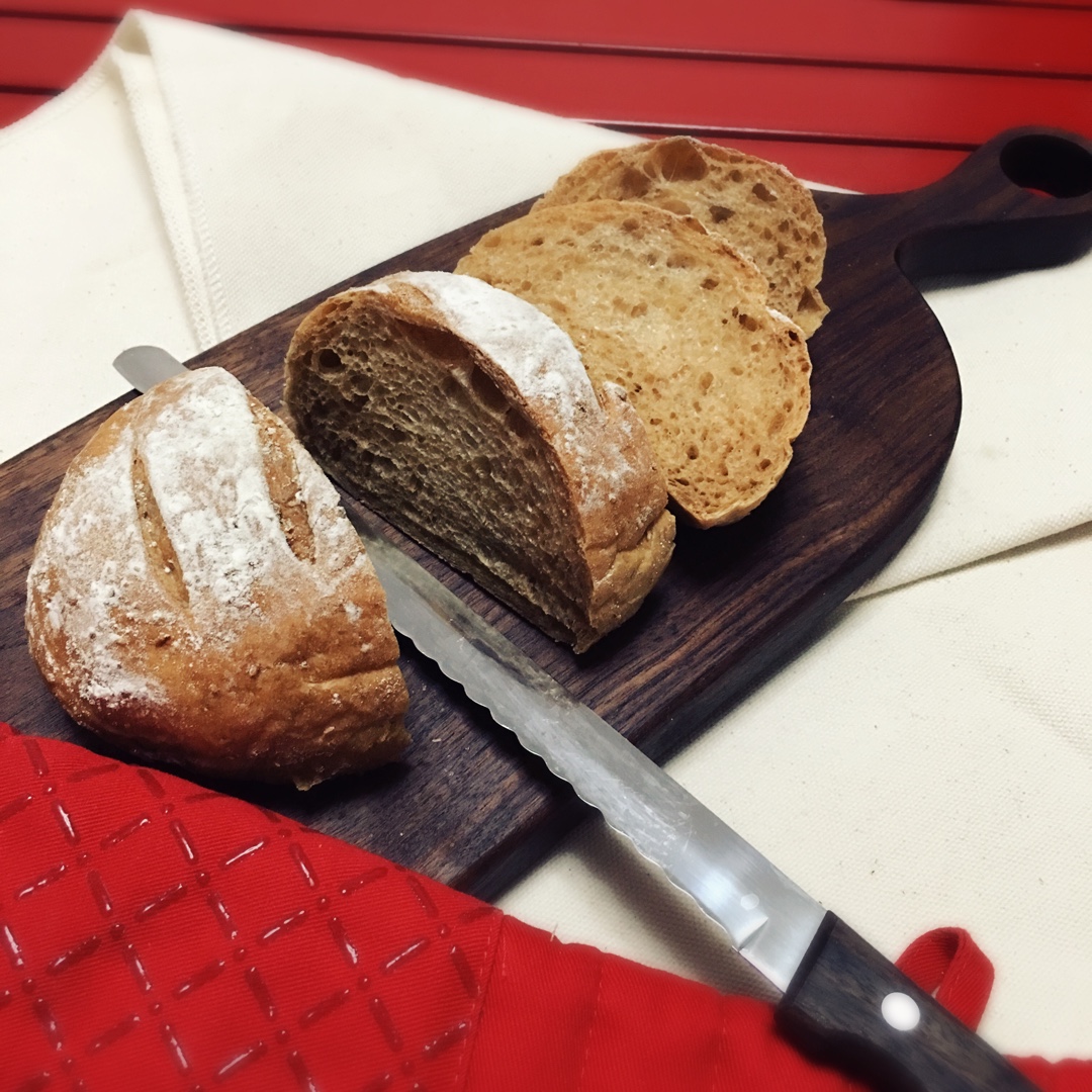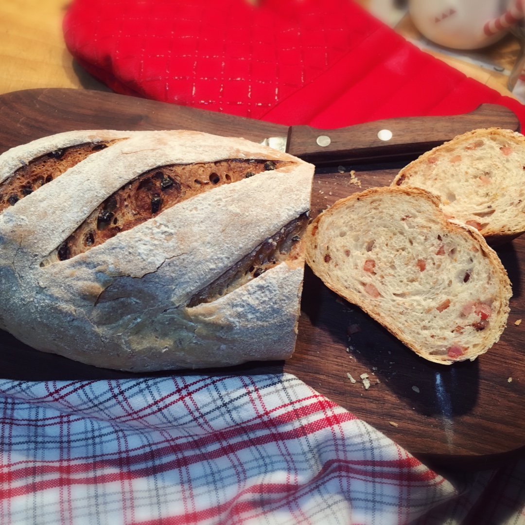 给你们看看剖面。这个配方没有黄油,糖也很少,是很健康的面包,口感比较紧实,咸香扑鼻,每一口都有粒粒肉肉,吃了一口还想吃一...