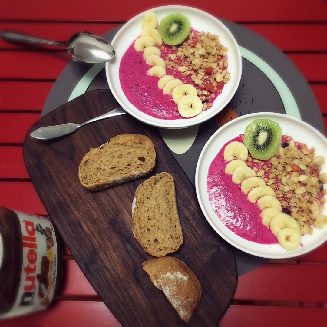 昨天烤的面包,切片后没有配芝士煎虾,做了个烟熏金枪鱼牛油果三明治,点缀一些西红柿沙拉和黑橄榄。权且就叫三明治吧,因为实在...