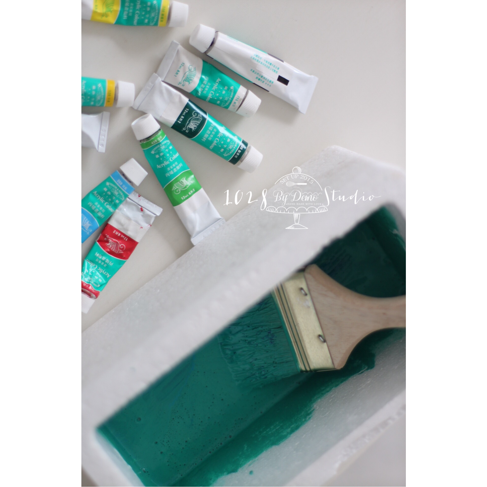 多点儿颜料刷刷瓶子。