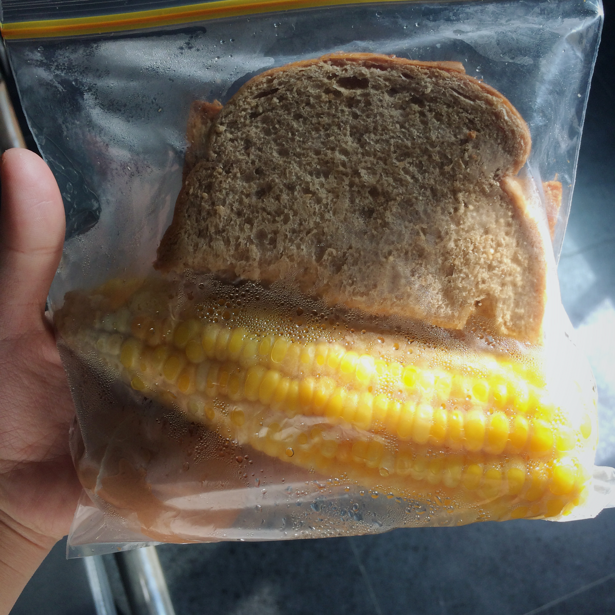 母亲大人一早煮的玉米,香~~~
