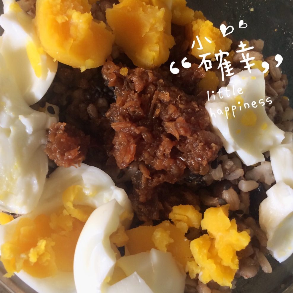 糙米饭,加了点老弟朋友做的肉酱,很香。