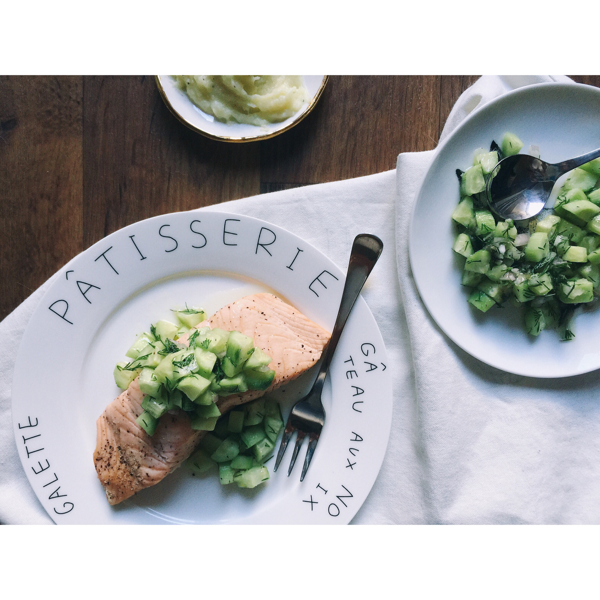 水煮三文鱼配黄瓜莎莎