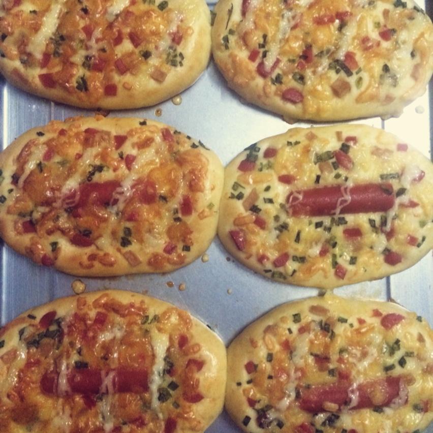 80g面团,一勺🥄脆皮肠粒+芝士碎,