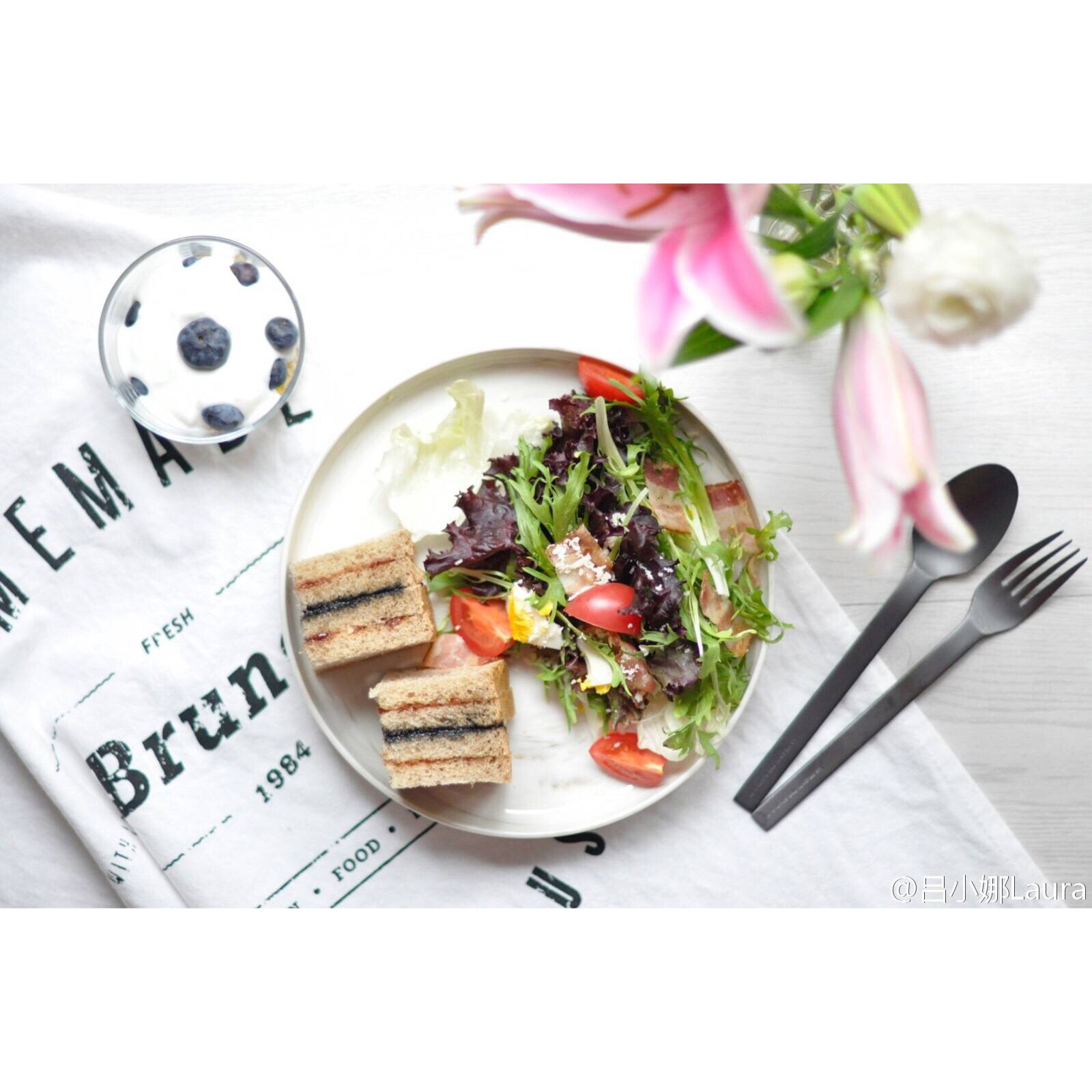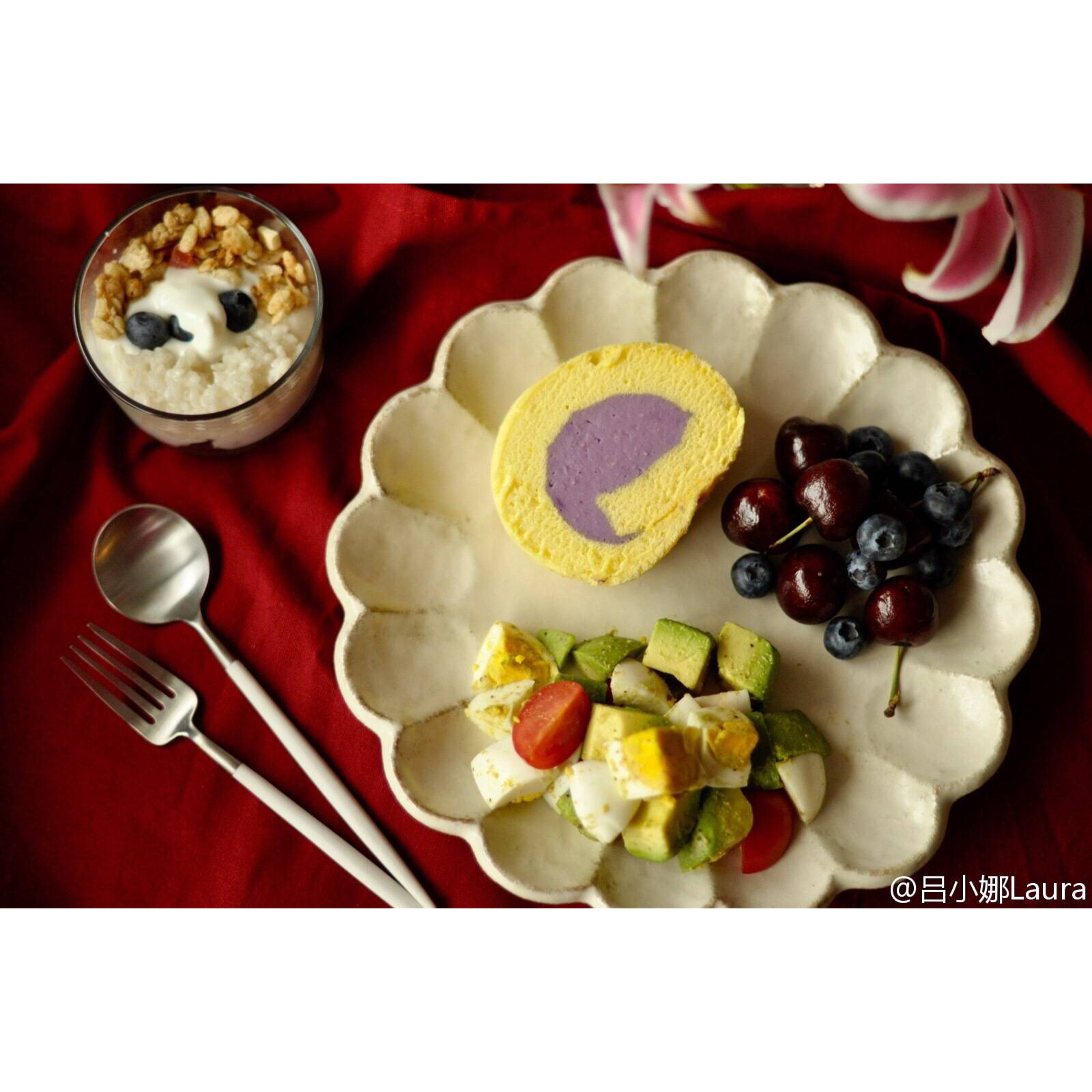 芋泥卷儿,牛油果鸡蛋沙拉,酸奶酒酿谷物~~周末,从来都是把早餐吃成午餐的节奏,不管几点起来 #午餐•2016年3月13日...