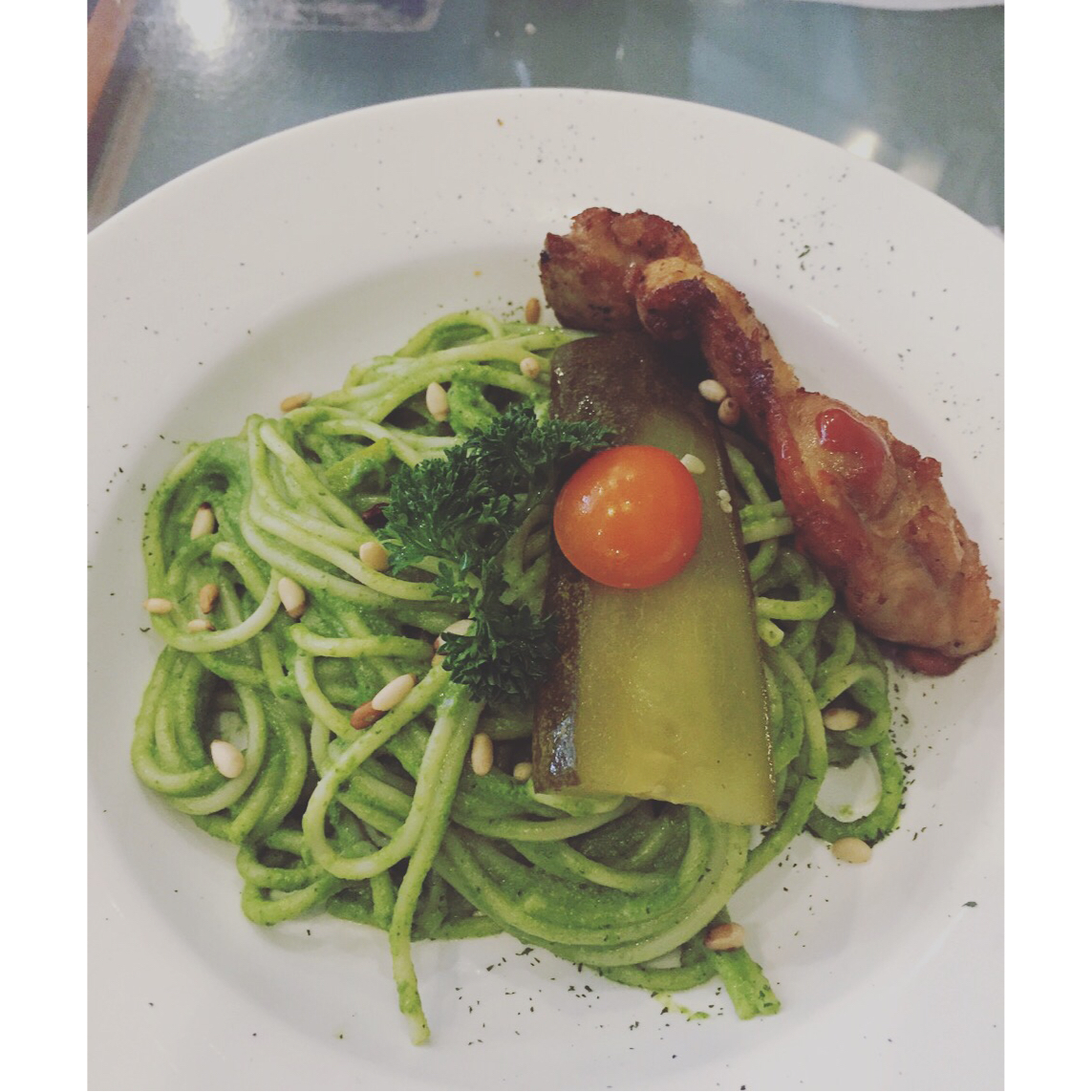 烤鸡排菠菜意面,p下图顿时高大上了