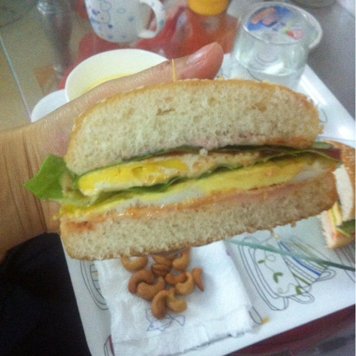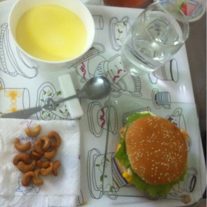 牛奶炖蛋 腰果 快手汉堡 白开水 早餐要好好吃