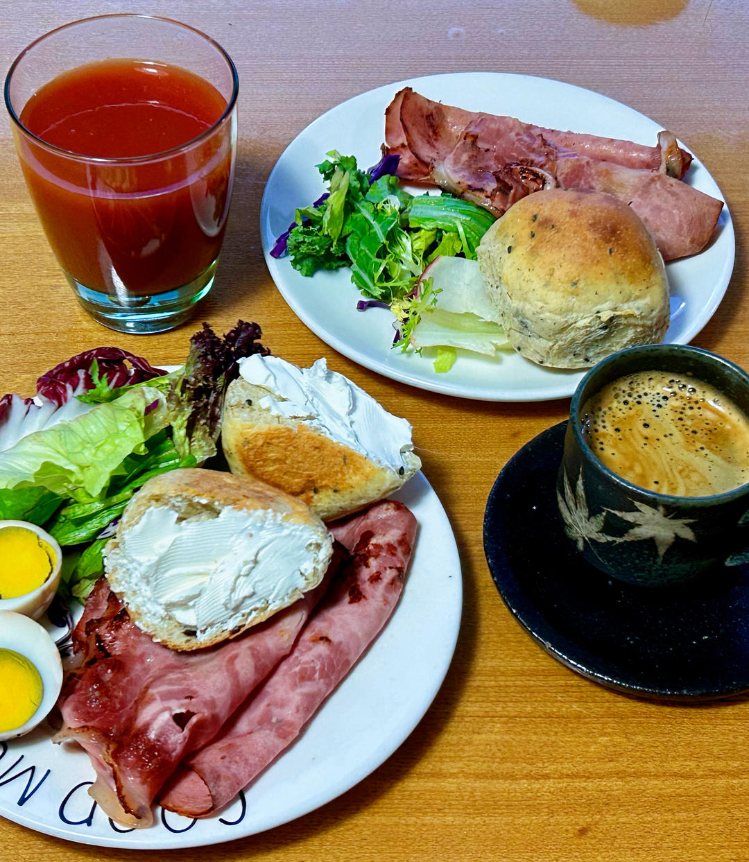 今日早餐:煎火腿,无糖小面包,蔬菜沙拉,首乌蛋,坚果,番茄汁,涂抹奶酪#早餐•2025年...