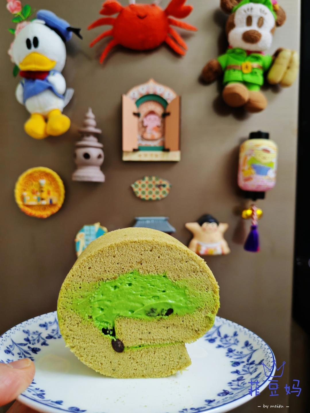 焙茶蛋糕卷~用了女儿旅游带回来的焙茶粉,做了这款焙茶蛋糕卷,里面夹了抹茶红豆奶油馅,真的好吃,茶味浓郁,颜色也靓丽。#一...